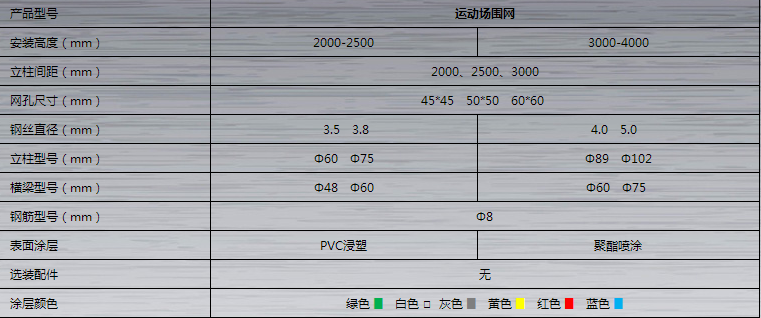 5.橫柱:48/2mm;球場(chǎng)圍網(wǎng)的