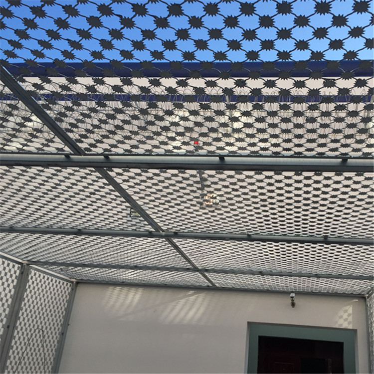 為了 加強(qiáng)監(jiān)獄鋼網(wǎng)墻的高安全性,常有客戶要求鋼網(wǎng)墻的上面在一層刀刺網(wǎng)來(lái)加強(qiáng)安全性能。刀刺網(wǎng)具有美觀、經(jīng)濟(jì)實(shí)用、防阻效果好、施工便利等優(yōu)異特點(diǎn),刀刺網(wǎng)常見(jiàn)的表面處理有電鍍鋅,熱鍍鋅和噴塑處…