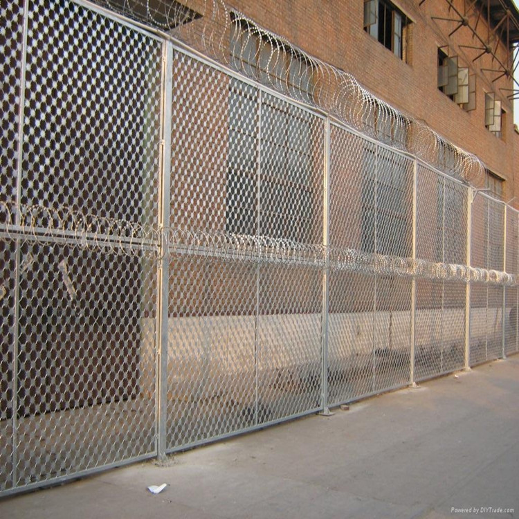 監獄鋼網隔離網也叫監獄護欄網,監獄鋼網墻,是應用于監獄相關單位看守所.戒毒所.拘留所.重要軍事基地,機關單位.哨所邊防邊境線等的圈禁防護。按照我國對安防等級的提高,各個監獄、看守所等高戒備場所需要按照要求來進行監獄鋼網隔離網、刀刺網改造安裝工程。