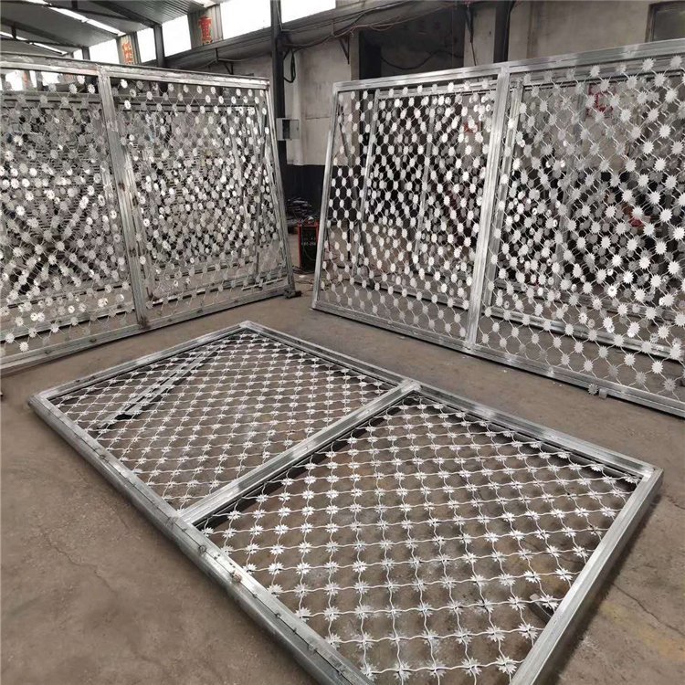 戒毒所鋼網(wǎng)墻具有堅固耐用、美觀大方、刀鋒銳利、防攀爬、抗強(qiáng)風(fēng)、抗沖擊、抗剪切、抗腐蝕等特點。戒毒所鋼網(wǎng)墻是非常重要的司法安全防護(hù)設(shè)施,又焊接鋼網(wǎng)加蛇腹形刀刺網(wǎng)組合而成。產(chǎn)品具有結(jié)構(gòu)新穎、堅固緊密、網(wǎng)面平整、網(wǎng)孔均勻、刀鋒銳利、防攀爬、抗腐蝕強(qiáng)等特點。建設(shè)于戒毒所的內(nèi)外墻地面及高墻之上,網(wǎng)墻內(nèi)側(cè)或頂部加裝蛇腹形刀刺網(wǎng),形成一道高不可攀、難以逾越的隔離屏障。配合高壓打擊電網(wǎng)、各種監(jiān)控報警設(shè)備確保監(jiān)獄安全萬無一失。
