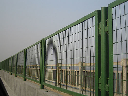 在橋梁護(hù)欄網(wǎng)中有一類防落物的護(hù)欄網(wǎng)被稱為橋梁防拋網(wǎng) ,又叫橋梁防落網(wǎng)或橋梁防護(hù)網(wǎng),它的特點(diǎn)是網(wǎng)孔較小,表面涂塑或是熱浸鋅。這類網(wǎng)欄常見(jiàn)的有兩種: