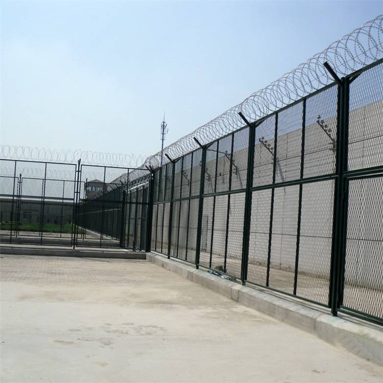 監獄鋼網墻可以用在監獄多個領域。放風場、監區、圍墻、周界等地。大致就分為兩種一種是在圍墻.上面,另外一種就是地面.上面。在圍
