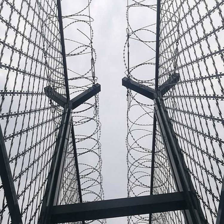 平整、網孔均勻、鋒銳利、防攀爬、抗腐蝕性強等特點。建設于監獄的內外墻地面及高墻之上,網墻內側或頂部加裝蛇腹形刺網,形成一道高不可攀、難以逾越的隔離障礙。配合高壓打擊電網、各種監控報警設備確保監獄安全萬無-失。產品特點:監獄鋼網墻(監獄圍墻網)具有堅固耐用、美觀大方、鋒銳利、防攀爬、抗強風、抗沖擊、抗剪切、抗腐蝕等優異特點。用途:監獄鋼網墻主要用于監獄、看守所、拘留所、戒毒所、軍事禁區、邊防線等高安全場所。