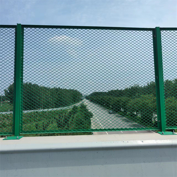 1、鋼板網式橋梁防拋網,鋼板網這種特殊結構的絲網既不影響司機的視線,又能起到防眩的作用,所以這種菱形鋼板網孔結構的防眩網是最常采用的。一般最普通應用的防眩網用鋼板網的規格如下:材質:低碳鋼板,板厚: 1.5mm-3mm ,長節距: 25mm-100mm ,短節距: 19mm-58mm網寬: 0.5m-2m網長0.5m-30m分鍍鋅和涂塑兩種。