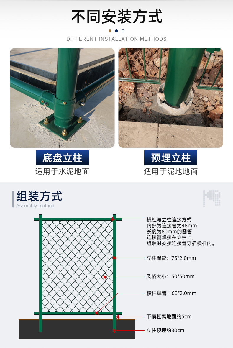 球場圍網的材質:鍍鋅低碳鋼絲PE/PVC包塑處理
