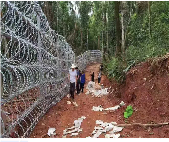 云南邊境防疫鋼鐵長(zhǎng)城采用蛇腹型刀片鐵絲網(wǎng),刀片剌網(wǎng)又名刮刀型刺絲,是一種發(fā)展起來的防護(hù)、隔離能力較強(qiáng)的新型防護(hù)網(wǎng)產(chǎn)品。鋒利的刀型刺由雙線扣裝后成蛇腹?fàn)?既美觀又讓人不寒而栗。起到了很好的阻嚇作用。同時(shí)該產(chǎn)品具有美觀、防阻效果好、施工便利等優(yōu)點(diǎn)。