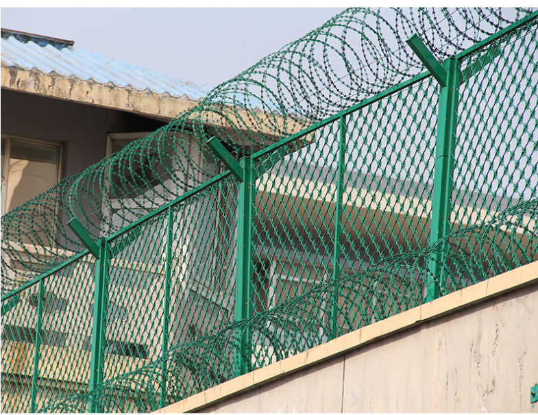 巡邏隔離網(wǎng)由:鋼絲網(wǎng)片、立柱、刀片剌網(wǎng)組成。