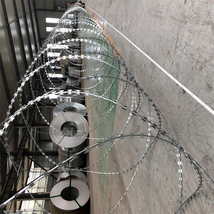 防攀爬刺網(wǎng)也稱為刀片刺絲、片剌網(wǎng),是一種新型防護(hù)網(wǎng)。刀片刺繩具有美觀、經(jīng)濟(jì)實用、防阻效果好、施工便利等優(yōu)異特點,目前,刀片刺繩已被廣泛應(yīng)用于許多國家的工礦企業(yè),園林公寓,邊防哨所,軍事領(lǐng)域,監(jiān)獄,守所,政府建筑物和其他國家的安全設(shè)施。
