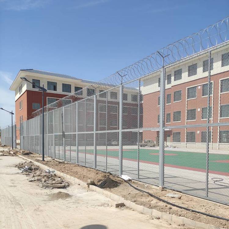 2、監獄隔離網設計要求整體連貫一致,框網方正,對角線誤差不大于2cm。監獄安全網圍欄網片安裝離地距離5-8cm ,框網與立柱采用螺栓固定邊耳式連接網頁每邊與立柱連接點不少于六處。