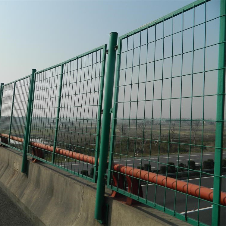 框架橋防拋網(又名橋梁防護網、橋梁護欄網)是由低碳鋼絲經過拉拔、編織、焊接、浸塑等一系列工藝加工而成,普遍用于市政高架橋,高速公路立交橋,鐵路立交橋,過街天橋,港口碼頭,畜牧,養植等的護欄防護。