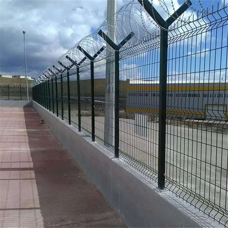 鋼筋網(wǎng)圍界也被稱為機(jī)場圍欄、Y型安全網(wǎng),由Y型支架支撐,是加固的焊接鋼板網(wǎng),帶有Y形加勁肋的鋼板可以提高防護(hù)網(wǎng)的抗沖擊性,由熱浸鍍鋅制成的葉片繩網(wǎng)結(jié)構(gòu)是一種優(yōu)質(zhì)的柵欄產(chǎn)品,具有很高的強(qiáng)度和安全保護(hù)性。