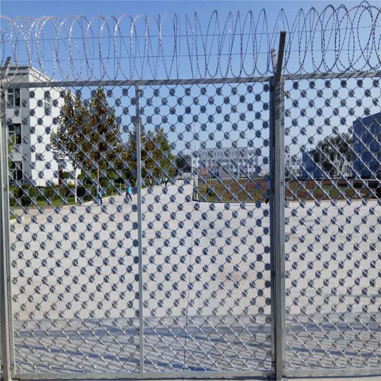 欄網(wǎng)的Y形柱還裝備了不銹鋼刀片刺網(wǎng),并對(duì)其外表進(jìn)行了噴涂。常見的是深綠色噴涂和銀灰色噴涂,看起來高端,簡(jiǎn)單而美麗,并且能夠